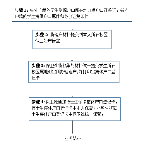 2.材料准备齐全后,交由保卫处户籍室统一办理。