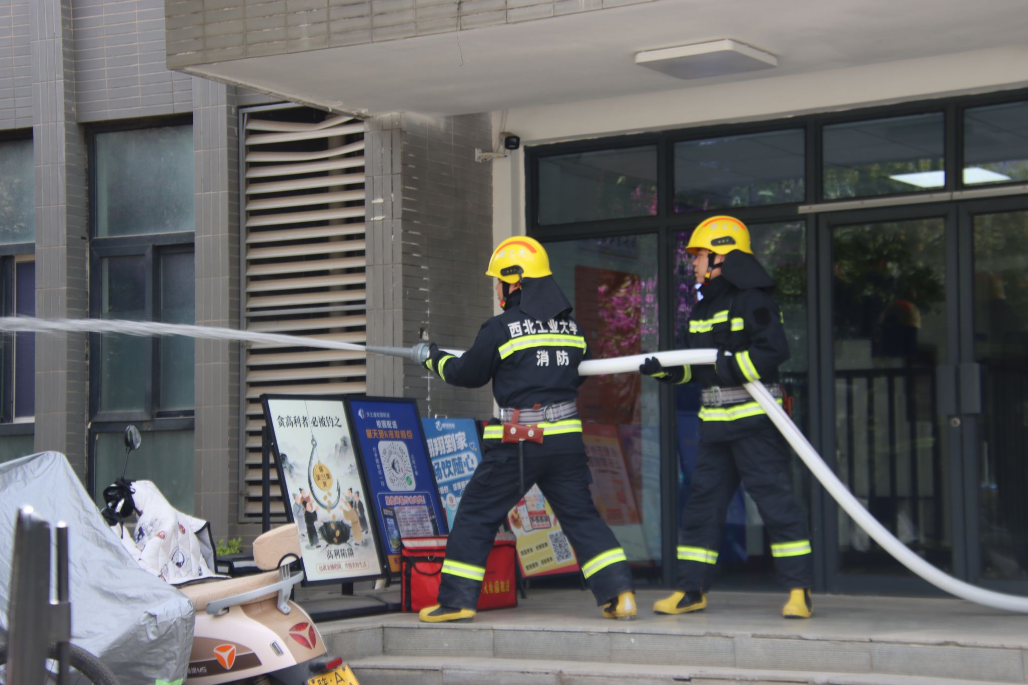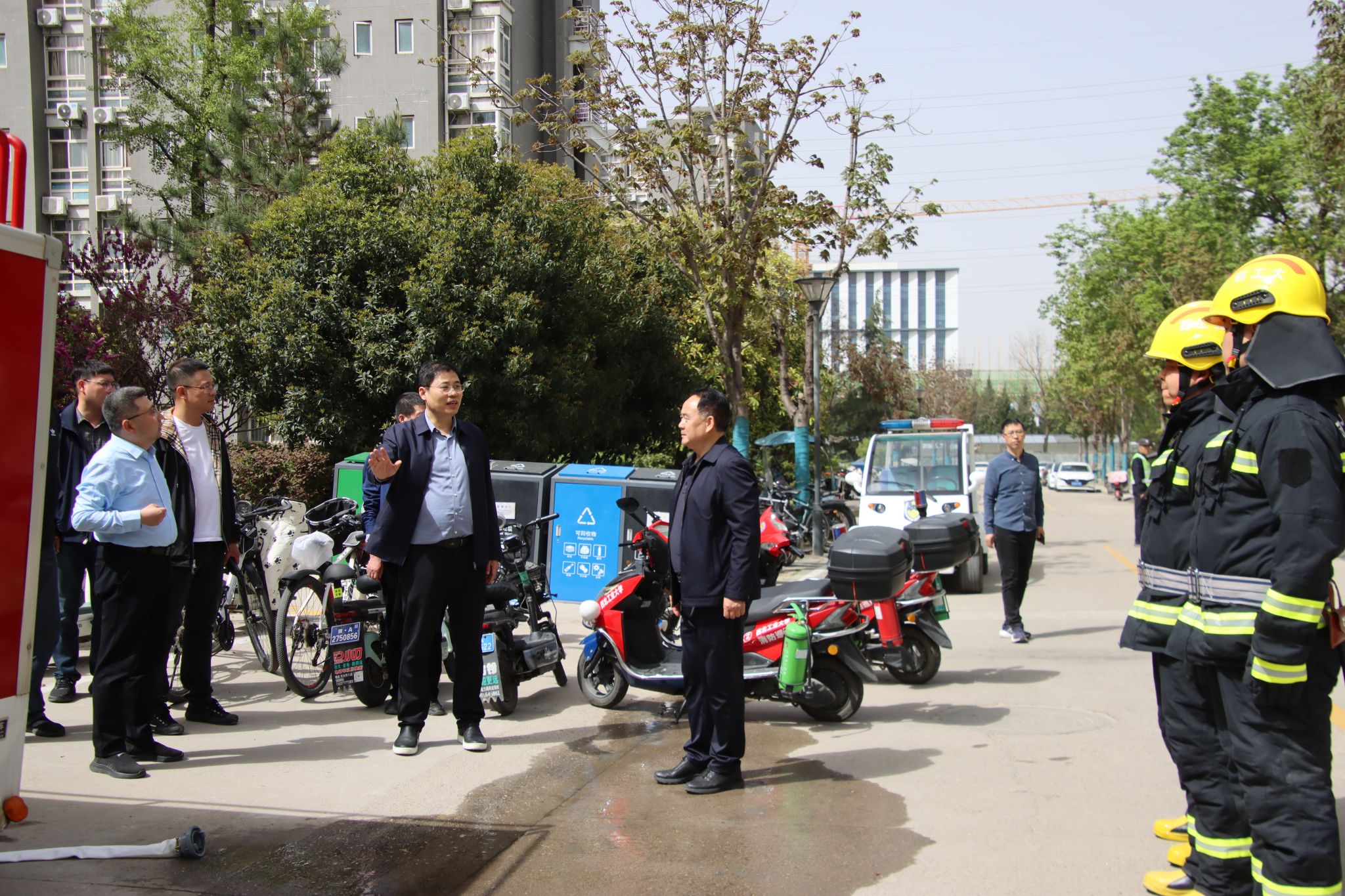在星天苑K座学生宿舍,检查组重点检查了消防设施设备状况,查看了应急通道、安全出口畅通情况。同时进行了模拟火情应急处置演练,物业工作人员向长安校区报警中心报告发生火情,长安校区微型消防站队员和巡逻队员接警后迅速赶赴现场进行扑灭处置。检查组对相关工作给予了肯定,并对进一步优化应急处置流程、强化隐患闭环管理提出明确要求。