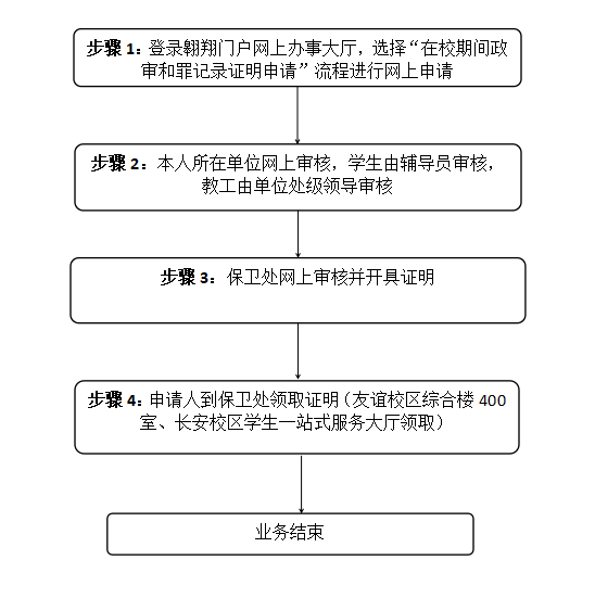 2.网上流程结束后到保卫处领取证明。如需在制式表格上盖章,请带上制式表格。