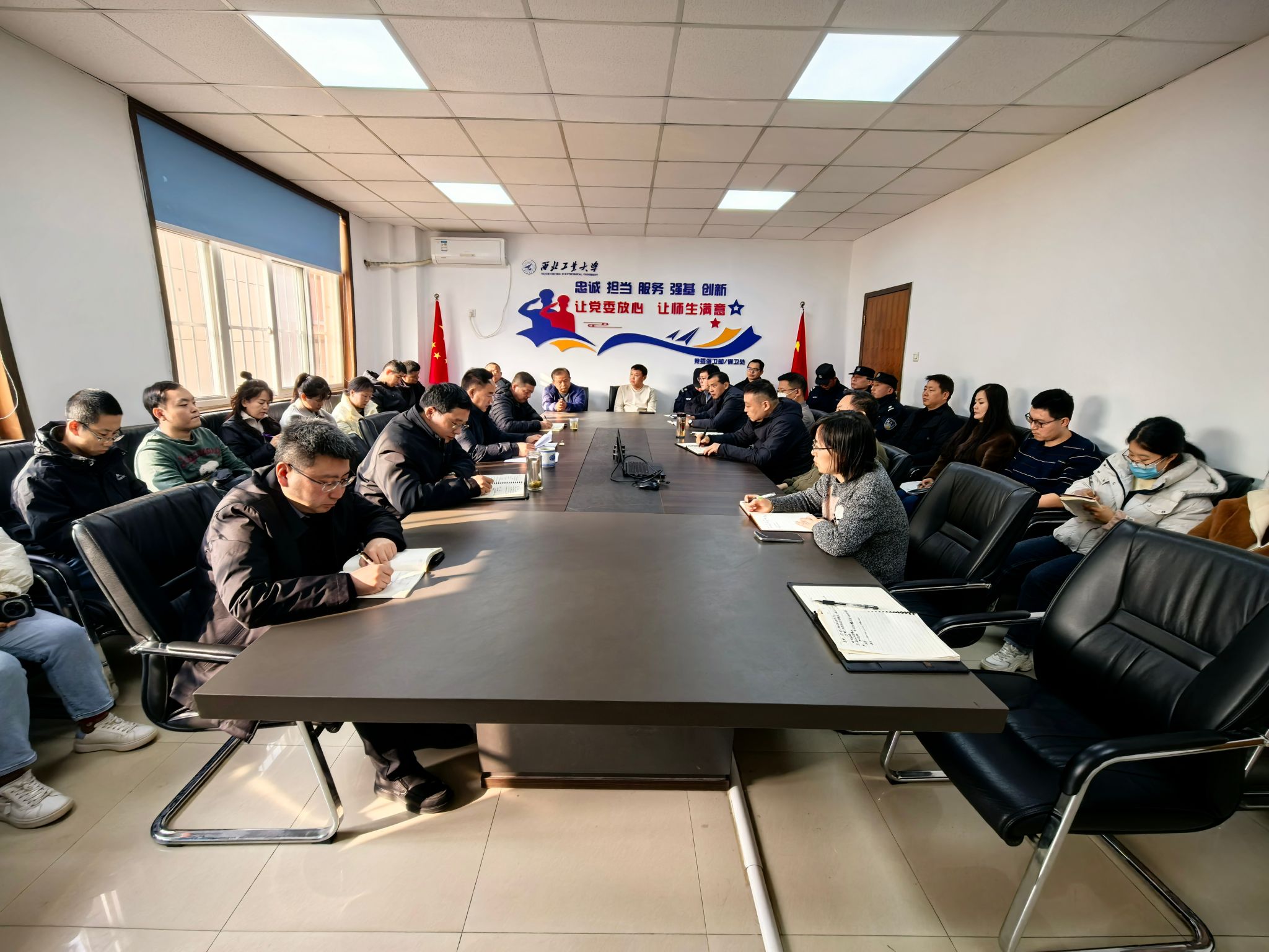 会上,朱建军带领与会人员深入学习李言荣书记、宋保维校长在寒假务虚会和春季新学期中层干部会上的讲话,重点围绕学校“十五五”规划的发展目标和重点工作任务进行学习研讨,并结合部门实际,对新学期重点任务作出部署:一是强化党建引领,对照“四强”党支部标准推进支部建设,不断提升组织力和战斗力;二是健全联动机制,构建“公安+保卫+社区”研判体系;三是推动科技赋能,提高主动预警能力,推进视频监控、门禁、报警等安防系统一体化建设;四是聚焦主责主业,加大安全隐患排查整治力度,持续优化校园交通环境,提升社区服务保障水平;五是加强队伍建设,锤炼过硬政治素养、业务能力和服务意识,为学校高质量发展提供坚实保障。
